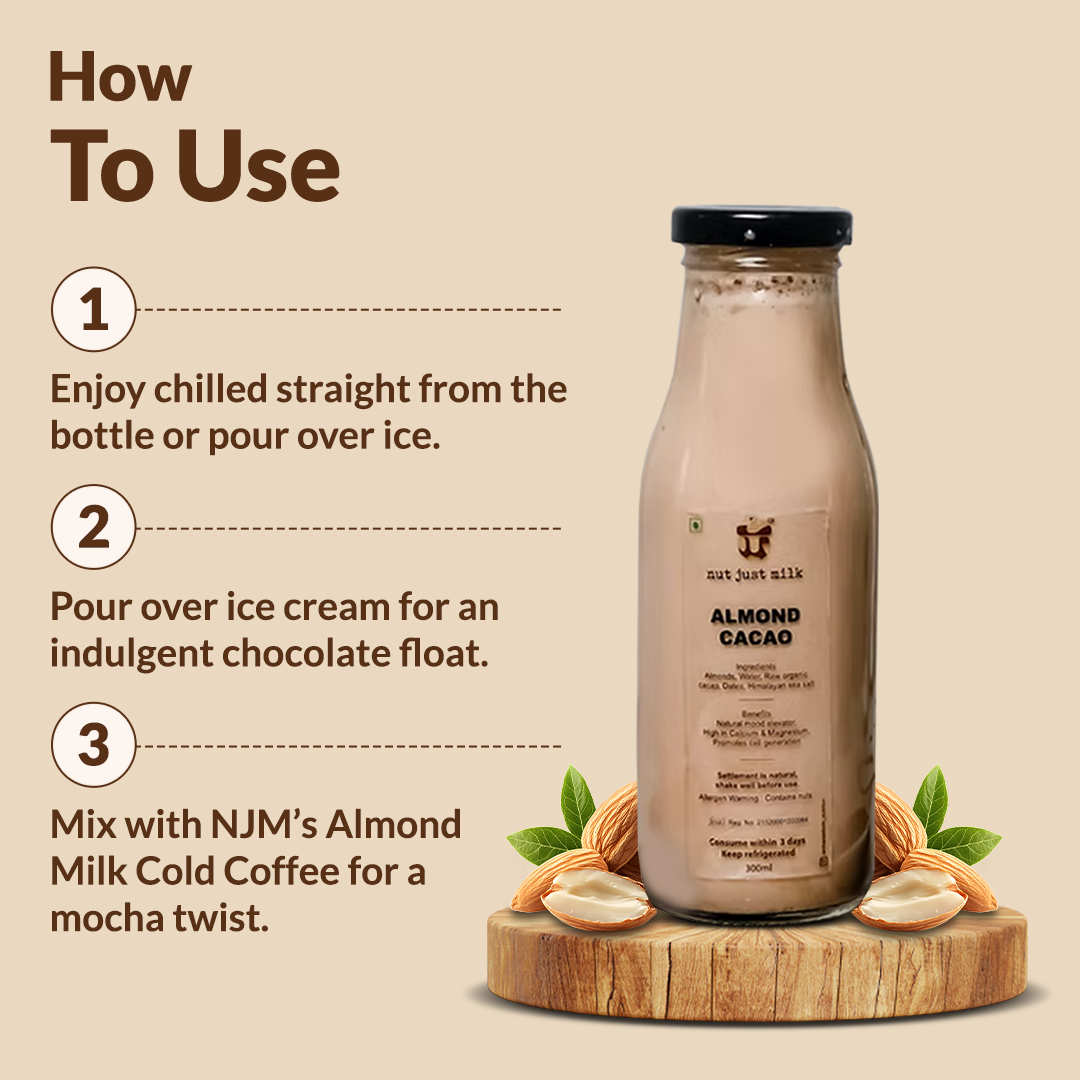 Pour NJM’s Almond Milk Cacao into a glass. Add the cocoa-coffee mixture and stir well until fully blended. -