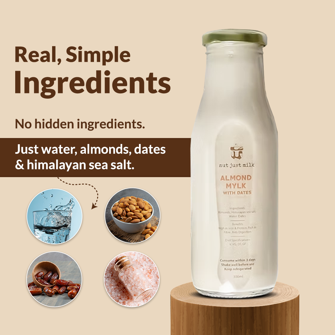 Ingredients: Almonds, Dates, Water, Himalayan Salt.