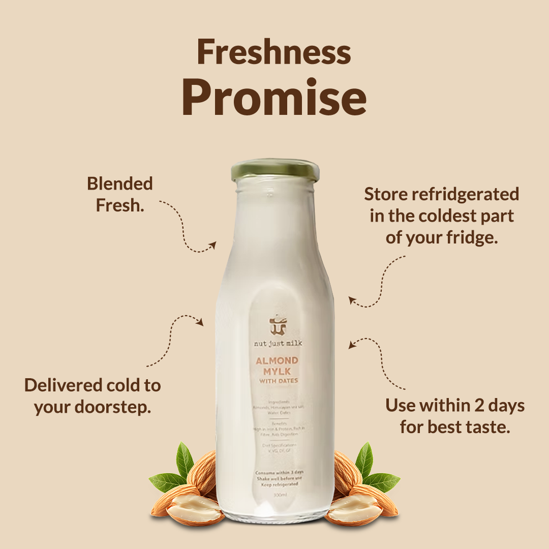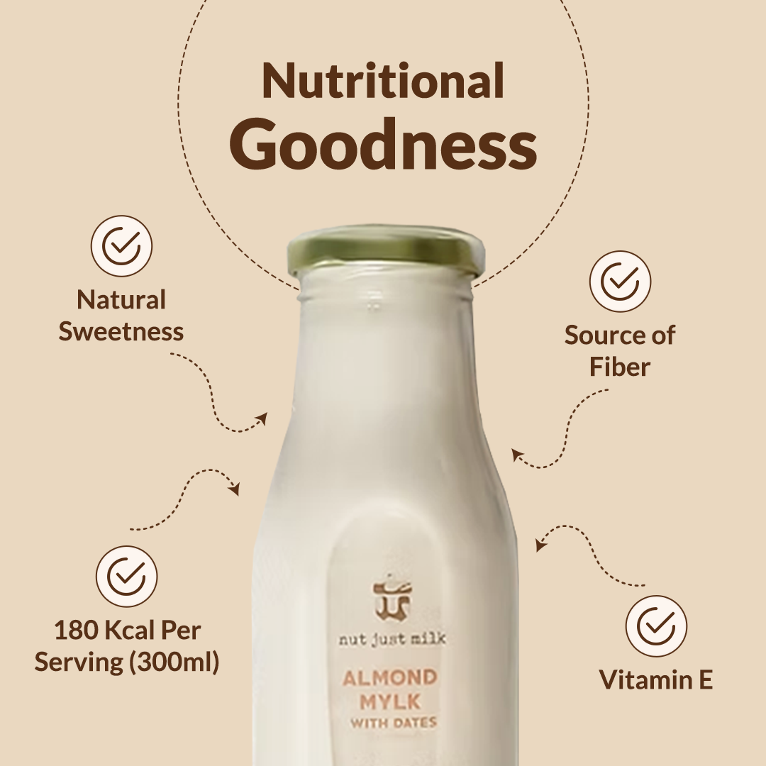 A blend of creamy almond milk and the natural sweetness of dates. Perfect for enjoying on its own, adding to coffee or tea, or used in baking and cooking to enhance recipes with a touch of natural sweetness.