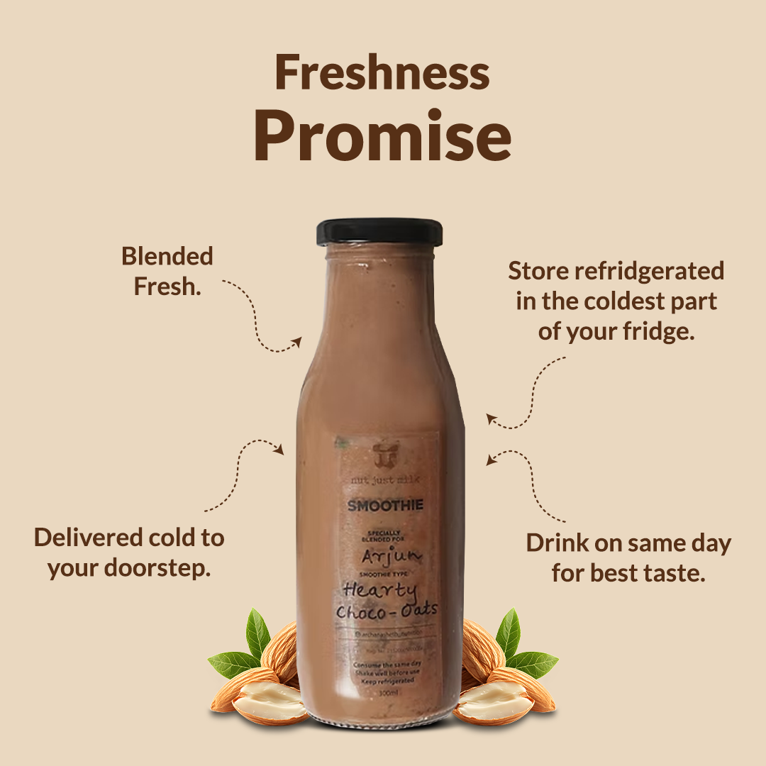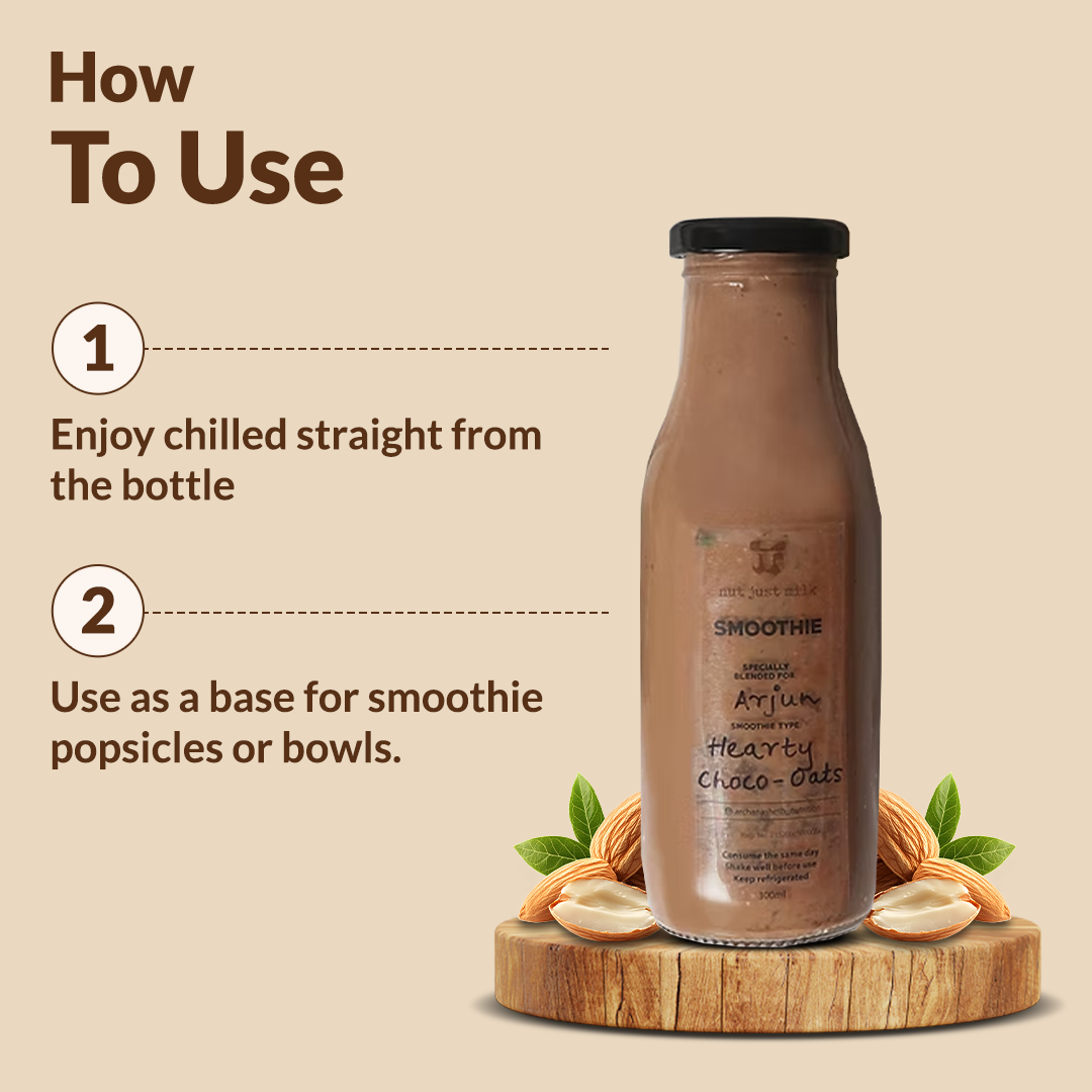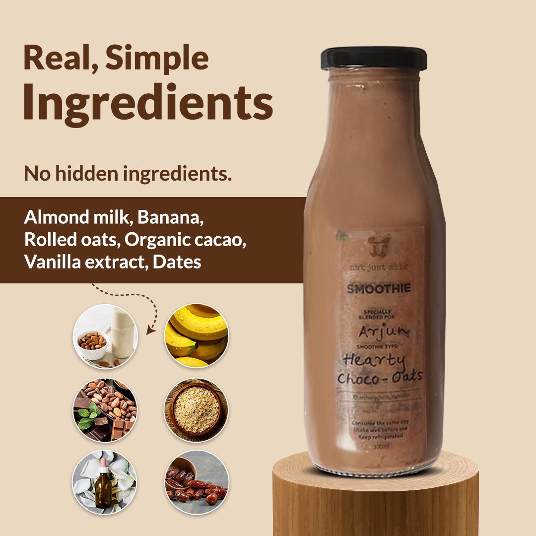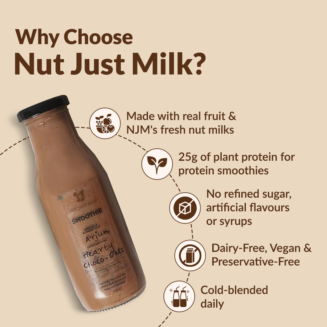 Ingredients: NJM Almond Milk, Banana, Rolled Oats, Organic Cacao, Vanilla Extract