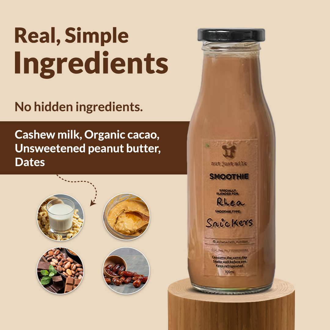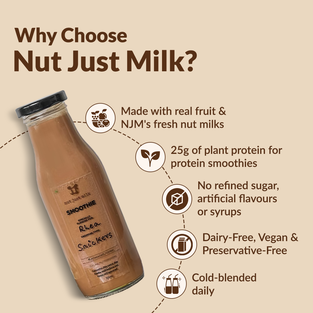 Ingredients: Cashew Milk, Organic Cacao, Pitted Dates, Unsweetened Peanut Butter
