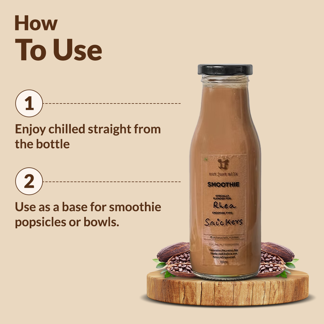 A silky and nutty blend with creamy cashew milk as the base. It captures the rich and indulgent flavor of a Snickers bar, but guilt free!